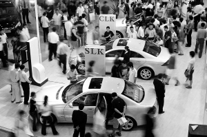 由海南日报报业集团主办的首届海南汽车展销会去年9月在海口会展中心举行,展会现场人头攒动,市民观展热情异常高涨。 本报记者 李幸璜 摄