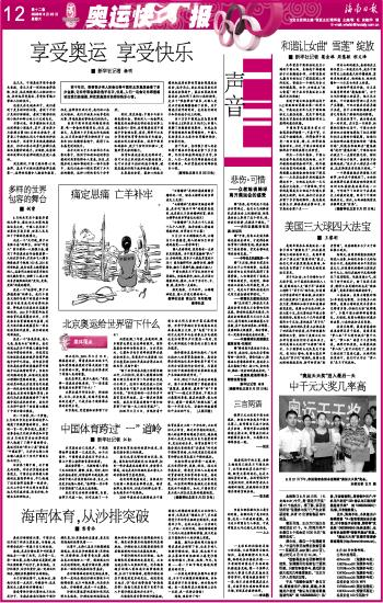 海南日报 奥运快报 012 2008-08-231 2008年08月23日 星期六