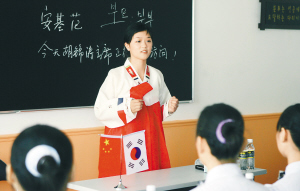8月26日,海南商贸学校的教师正在教该校第一批韩语学员学韩语。 当天,海南商贸学校韩语教育基地正式挂牌。开设的专业语言课有韩语导游班、高尔夫班、酒店企业韩语班等。 我省去年接待韩国游客高达17万人次,而能够带团、开展商贸活动的高级韩语翻译却不足10人。 本报记者 苏建强 摄