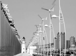 | →青岛奥帆中心主防波堤建设安装了41盏风能灯。该场馆建设中倡导“科技奥运、绿色奥运”的理念,大量利用太阳能、风能等清洁能源,成为集循环经济示范和新能源应用等为一体的现代化赛场。
