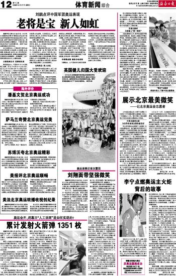 海南日报 体育新闻 012 2008-08-271 2008年08月27日 星期三