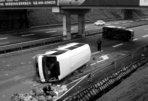 | 今年1月琼海中原一汽追尾后的事故现场及伤者救治现场。