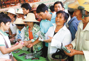 8月28日,在第七届海南(永发)冬季优质农资展销会上,农民们争先恐后地选购冬季瓜菜优良种子。 本报记者 陈德雄 摄