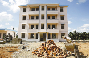 | 8月27日,屯昌县西昌镇镇政府院内,一栋4层的干部周转房已基本建成,预计今年9月份可投入使用。 本报记者 宋国强 摄 |