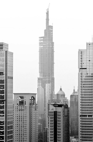 南京紫峰大厦 江苏第一高楼———南京绿地广场紫峰大厦381米的主体结构最近已顺利封顶,楼顶69米高的灯塔将于下月完工。紫峰大厦位于南京市中心鼓楼地段,整体设计高度达450米,总楼层89层,其高度在全世界已建成和在建的摩天大楼中位居第七。建成后将成为南京城市新地标建筑。 新华社记者 孙参 摄