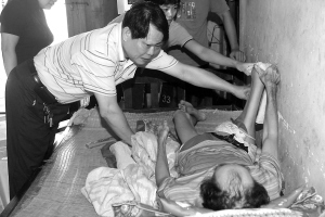 昨天,梁老伯的女儿早早地就在路口等候医生,并把医生护士带进她那小小的家中。