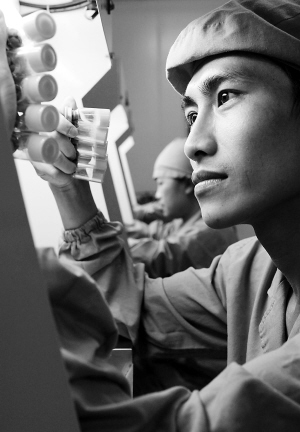 ← 8月28日,海南全星医药股份有限公司的技术人员正在对生产的药品进行灯检。该公司是我省唯一一家由科技部、国资委等部门于近日联合授予的“创新型企业”,目前已累计实施新药研究项目近200项,其中,有60多个品种已投产上市。