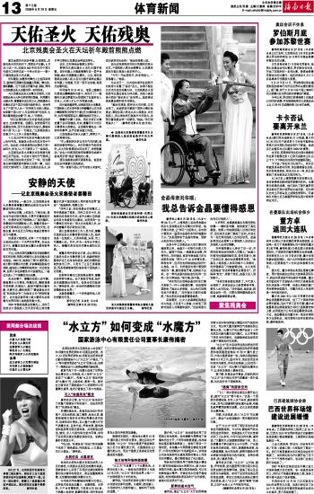 海南日报 体育新闻 013 2008-08-291 2008年08月29日 星期五