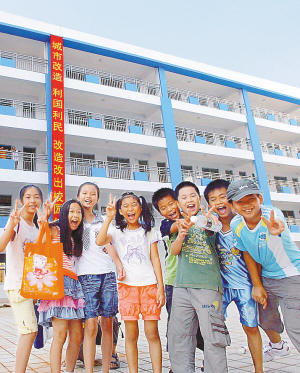 8月29日上午,原就读海口市玉沙村小学的几名学生,来到新玉沙村学校,提前感受新校园的美丽和气派。 海口玉沙村拆迁安民工程———新玉沙学校,于今年3月1日开工,目前学校一期工程(小学部)已全部完工,内部的电脑、实验仪器、课桌椅、黑板等也已安装完毕,将于9月1日正式开学。与旧学校相比,新玉沙学校校园更美丽、设备更先进。 本报记者 古月 摄