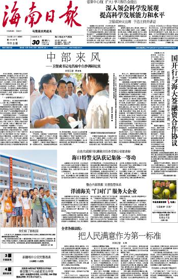 海南日报 头版 001 2008-08-301 2008年08月30日 星期六