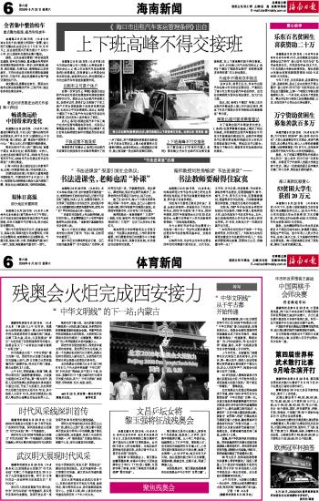 海南日报 海南新闻 006 2008-08-301 2008年08月30日 星期六