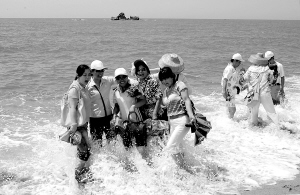 | 游客在博鳌玉带滩戏浪,但仅能戏浪不能满足游客对名镇博鳌的期望。特约记者 蒙钟德 摄