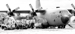 | 8月31日,在新奥尔良市,一架来自得克萨斯州的军用运输机帮助当地病人撤离。