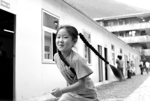 9月1日,在汉中市略阳县高台小学,一名小学生在活动板房教室前玩耍。 当日,陕西地震灾区汉中市2191所中小学、幼儿园全部按时开学。为解决在新校舍建成前安全校舍不足的问题,有17646名学生在活动板房中上课。 新华社记者 丁海涛 摄
