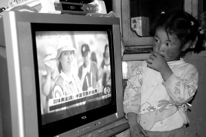 户户通电 牧民新生活 8月31日,青海省贵南县角色村的藏族小姑娘嘉西措正在看电视。从2006年开始,青海省电力公司启动了总投资达13亿元的“户户通电”工程,致力于解决青海农牧区4万多户21万多人的用电问题,着力改善农牧区生产生活条件。 新华社发