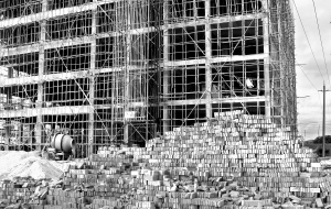 | ↑ 在海口和三亚,红砖逐渐被淘汰。海口高层建筑内墙几乎全用新型轻质砖。三亚“禁实”城区建筑新墙材使用率达90%。 本报记者 张谯星 摄 |