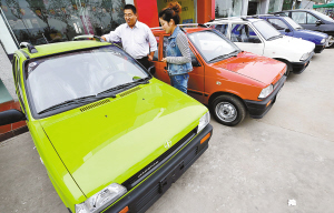 | 9月1日,市民在银川市一家汽车销售处选购小排量汽车。国家通过“抑大扬小”的税收政策,鼓励小排量汽车的生产和消费,促进环保和节约资源。 新华社记者 王鹏 摄 |