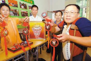 | 9月2日上午,海口市残疾人李海湘、车伟文、朱东荣、杜秀茂等人,将他们为北京残奥会制作的手工艺术品,送到海口市残疾人联合会,委托其送给参加北京残奥会的外国运动员。