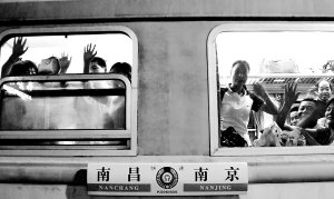 9月1日晚,旅客在九江火车站乘坐铜九铁路首趟K505次南昌至南京的旅客列车。9月1日,铜九铁路(铜陵-九江)正式开行客运列车。国家重点工程铜九铁路全长251公里,今年3月建成,7月1日先期开通了货车运营。 新华社发