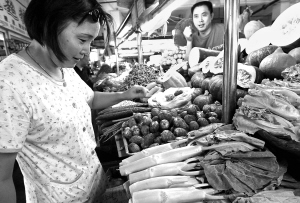 9月2日,顾客在上海市徐汇区的宛平标准化菜市场内选购蔬菜。