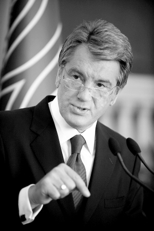 | 9月3日,乌克兰总统尤先科在首都基辅的总统官邸发表讲话。尤先科当天说,议会已经开始一场“政变”。 新华社/法新 |