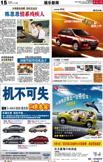 | 海南日报 娱乐新闻 015 2008-09-041 2008年09月04日 星期四 |