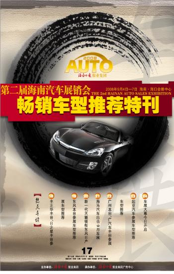 | 海南日报 海南第二届汽车展销会 017 2008-09-041 2008年09月04日 星期四 |