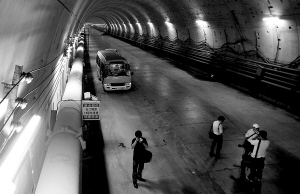 9月5日,几名记者在上海长江隧道参观上行线。 当日,随着超大直径盾构顺利进入上海长兴岛接收井,世界最大直径盾构隧道———上海长江隧道工程实现双线贯通。被誉为“万里长江第一隧”的长江隧道长约8.9公里,隧道内径13.7米,隧道外径15.43米,为世界最大直径盾构隧道。 新华社发