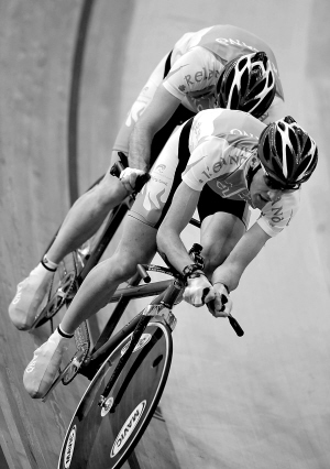 9月5日,参加北京残奥会的冰岛自行车选手在北京老山自行车馆进行场地自行车的适应训练。 新华社发