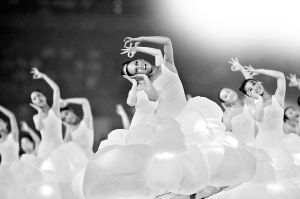 “今夜的星星比任何时候都多,我在星光下显得格外美丽。星星,你好。”320名聋人姑娘身着发光的白色裙裾,在50名手语老师的指挥协调下,在白玉盘上用手语舞蹈传达着丰富的内心世界。