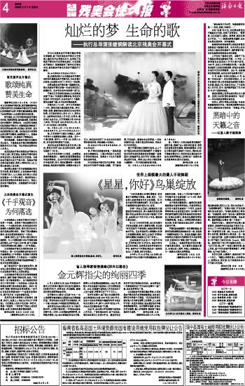 海南日报 残奥会快报 004 2008-09-071 2008年09月07日 星期日