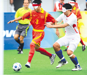 据新华社北京9月7日电 (记者王昊飞)7日,北京2008年残奥会5人制足球比赛进行了首日争夺,凭借福州选手王亚锋的建功,中国队以3:0击败英国队。上届残奥会冠、亚军得主巴西队和阿根廷队也分别战胜各自对手。
