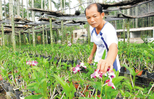 | 槟榔村村民苏就清利用房前屋后的空地种植兰花,每年纯收入过万元。