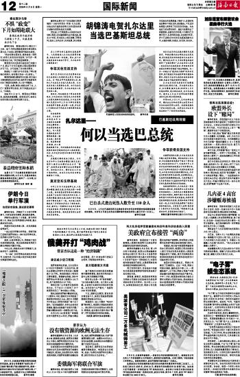 胡锦涛电贺扎尔达里当选巴基斯坦总统