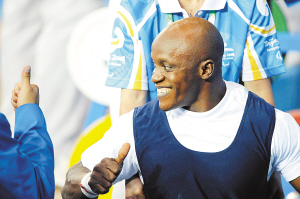 | 鲁埃尔·伊沙库在打破纪录后学习手势“好样的”。新华社 发 |