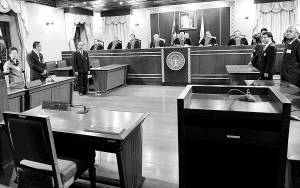 | 9月9日,在泰国首都曼谷,泰国宪法法院对沙马违宪案进行判决(图中空座为受审席,沙马本人未出庭)。 新华社记者陈铎摄 |