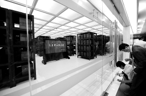 9月9日拍摄的安置在国家图书馆新馆地下一层恒温恒湿独立区域内的《四库全书》。当日,经过3年多的建设,国家图书馆二期暨国家数字图书馆正式开馆接待读者。同时,国家图书馆的镇馆之宝———文津阁本《四库全书》首次向社会公众展示。 新华社发