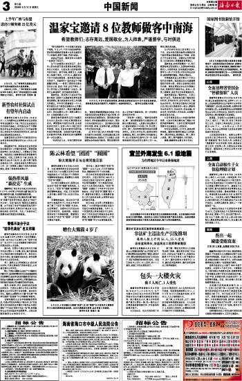 海南日报 中国新闻 003 2008-09-101 2008年09月10日 星期三