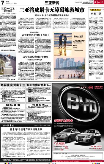 海南日报 三亚新闻 007 2008-09-101 2008年09月10日 星期三