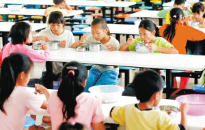| 作为接收“教育移民”的重点学校,白沙县第二小学环境优美,设施完善。图为学生在宽敞整洁的食堂就餐。 本报记者 宋国强 摄 |