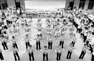 | 九月十日,我省服务北京奥运会的赛会志愿者带着深情厚谊和中秋月饼来到海南省特殊教育学校,表演《微笑北京》大型手语操,和聋哑孩子、教职员工共庆佳节。