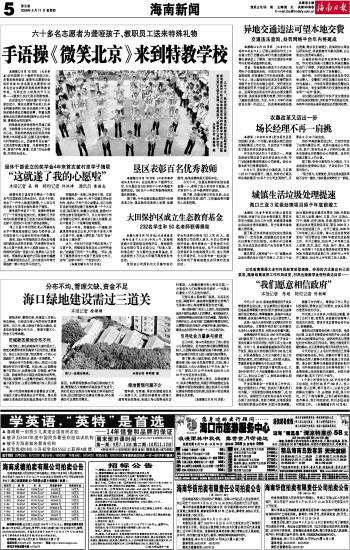 海南日报 海南新闻 005 2008-09-111 2008年09月11日 星期四