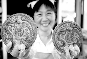 | 9月11日,安徽省淮北市一家食品店的工作人员展示“龙凤双喜”情侣月饼。中秋佳节临近,许多年轻人选择在中秋小长假期间喜结连理,商家借机推出这款“龙凤双喜”情侣月饼,受到消费者的喜爱。 新华社发 |