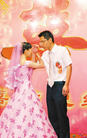 ↑海口许多新人纷纷选择中秋节举行婚礼,祈求“花好月圆”。 本报记者 李英挺 摄