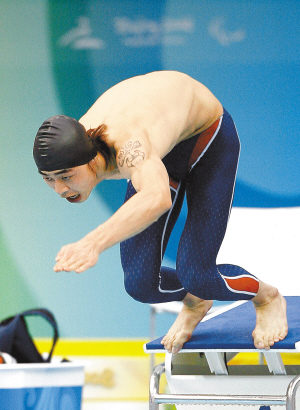 坐在轮椅上的中国剑客豪气十足,叶如意和张蕾包揽了男子个人花剑A级冠亚军,胡道亮折桂男子个人花剑B级。另一个场地上的“箭客”也不甘示弱,19岁的新秀成昌杰以横扫千军的霸气射落男子个人反曲弓坐姿1级/坐姿2级金牌。举重场上,小将刘磊和三朝元老李瑞芳分别在男子75公斤级和女子82.50公斤以上级夺金。“水立方”里,中国队的独臂明星王晓福在男子50米自由泳S8级比赛中获得第二枚金牌并刷新了世界纪录。中国的男、女盲人门球队同样表现出色,男队夺金女队摘银。