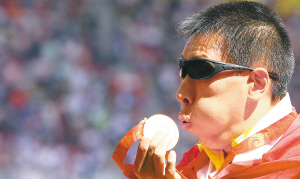 他表示,拿出北京残奥会的金牌,希望激励中国残疾人运动员在下一次祖国举办的残奥会上取得好成绩,而雅典的金牌是用来激励他们在国际赛场上为国争光。