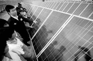 9月15日,英利公司的技术人员(中)正在向甘肃省会宁县三房吴中学的学生讲解太阳能发电知识。 当日,世界十大光伏企业之一的英利集团公司,向甘肃省会宁县三房吴中学捐赠的光伏电站正式投入使用。按照年平均日照时间4小时计算,这个电站每年可提供电力3万度,将为该校及周边提供环保、清洁的电能。 新华社记者 张锰摄