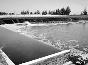 记者在一家示范基地看到,池内四周增设的增氧机不断运转,使塘水产生水平环流,残渣产生“水力聚污”现象,并向中央底部聚集,再由中央排污管和水泵将池塘底部污水抽到池边宽十多米的水槽里,停留20—40分钟后,固液自然分离,溢出水槽的水,水层厚度小于0.3毫米,经过30-60度坡度的池壁斜面流回池内,自然光化学催化、氧化就在这个斜面上进行。
