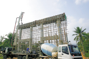 绕城高速: 亚龙湾连接线 完成80%工程量 记者9月16日从三亚市政府获悉,截至目前,鹿城38个重点建设工程项目进展顺利,基本完成了年初制定的既定投资量。其中,三亚市绕城高速公路亚龙湾连接线已经完成80%的总工程量。图为亚龙湾连接线田仔大桥工地上,工人们在紧张施工。 本报记者 程范淦 摄