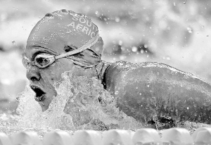 残奥“八朝元老”、瑞典枪手雅各布森在北京收获3金,从而将个人收集的残奥金牌积累到了16枚,其中他在北京射落的第14枚金牌,资格赛以及决赛成绩都与北京奥运会冠军、印度选手宾德拉的完全一样。南非姑娘纳塔莉·杜托伊特因7年前的一场车祸失去了左小腿,但3个月后便重返泳池的她不仅在雅典横扫5金,而且在4年后的北京重复了同样的显赫战绩。更让人刮目相看的是,她凭借实力游进了25人参加的北京奥运会女子10公里公开水域赛场,因为她一直都坚定地告诉自己“我是一个游泳选手,而不只是残疾人运动员”。